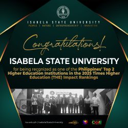 Isabela State University (ISU) has received three awards at the Internationalization Champions of Nation-building and Sustainability (ICONS) Awards 2025, an annual ceremony of the Commission on Higher Education (CHED) that