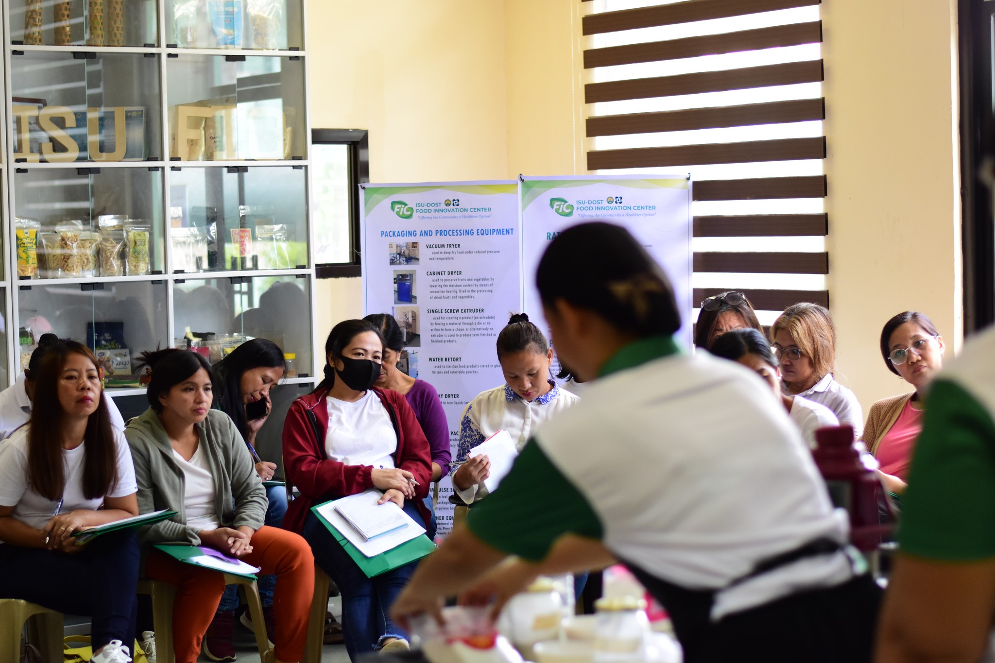 Complementing the lectures were product demonstrations led by FIC and project staff Elvira Antalan, Jane Ellen Pagaragan, and Mariela Farro Alibania, who showcased locally developed products such as dried cucurbits, fruit wine, and juice concentrates. These demonstrations highlighted practical applications of research-based technologies, helping participants better understand the processes involved in safe, efficient, and innovative food production.