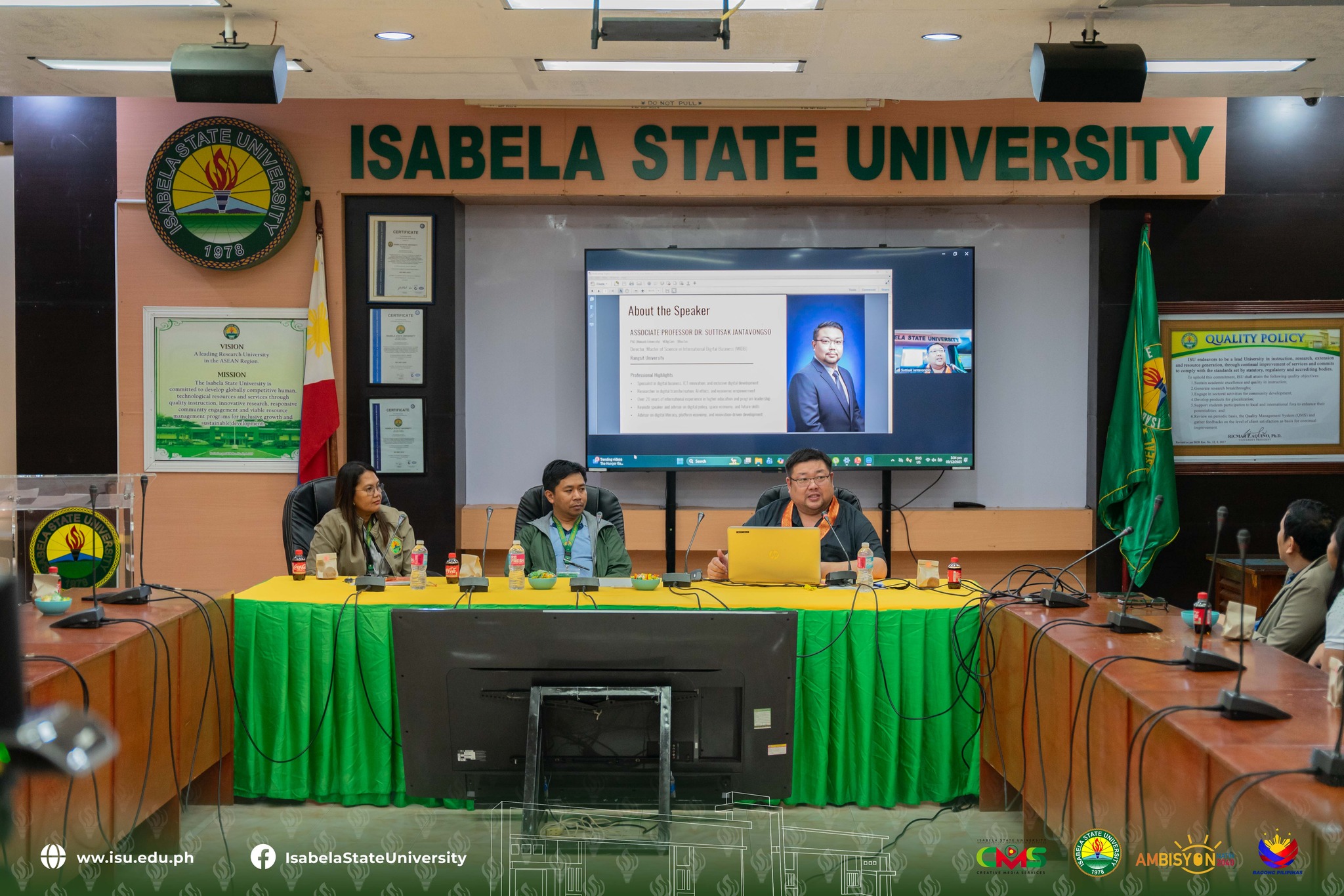 Isabela State University (ISU), through the College of Computing Studies, Information and Communication Technology (CCSICT) and the College of Arts and Sciences (CAS), welcomed Prof. Suttisak Jantavongso from Rangsit University in Thailand, for a specialized lecture held on December 9, 2025 at the Alba Hall, ISU Echague.