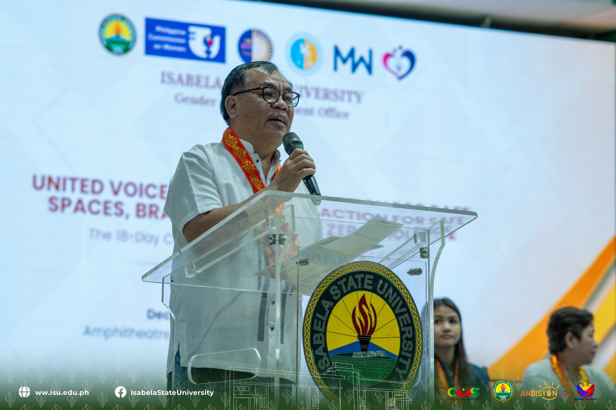 Isabela State University (ISU), through its Gender and Development (GAD) Office, formally joined the national 18-Day Campaign to End Violence Against Women (VAW) with a gathering themed, “United Voices: ISU’s Call to Action for Safe Spaces, Brave Voices, and Zero Violence”, on December 1, 2025 at the ISUE Amphitheater.