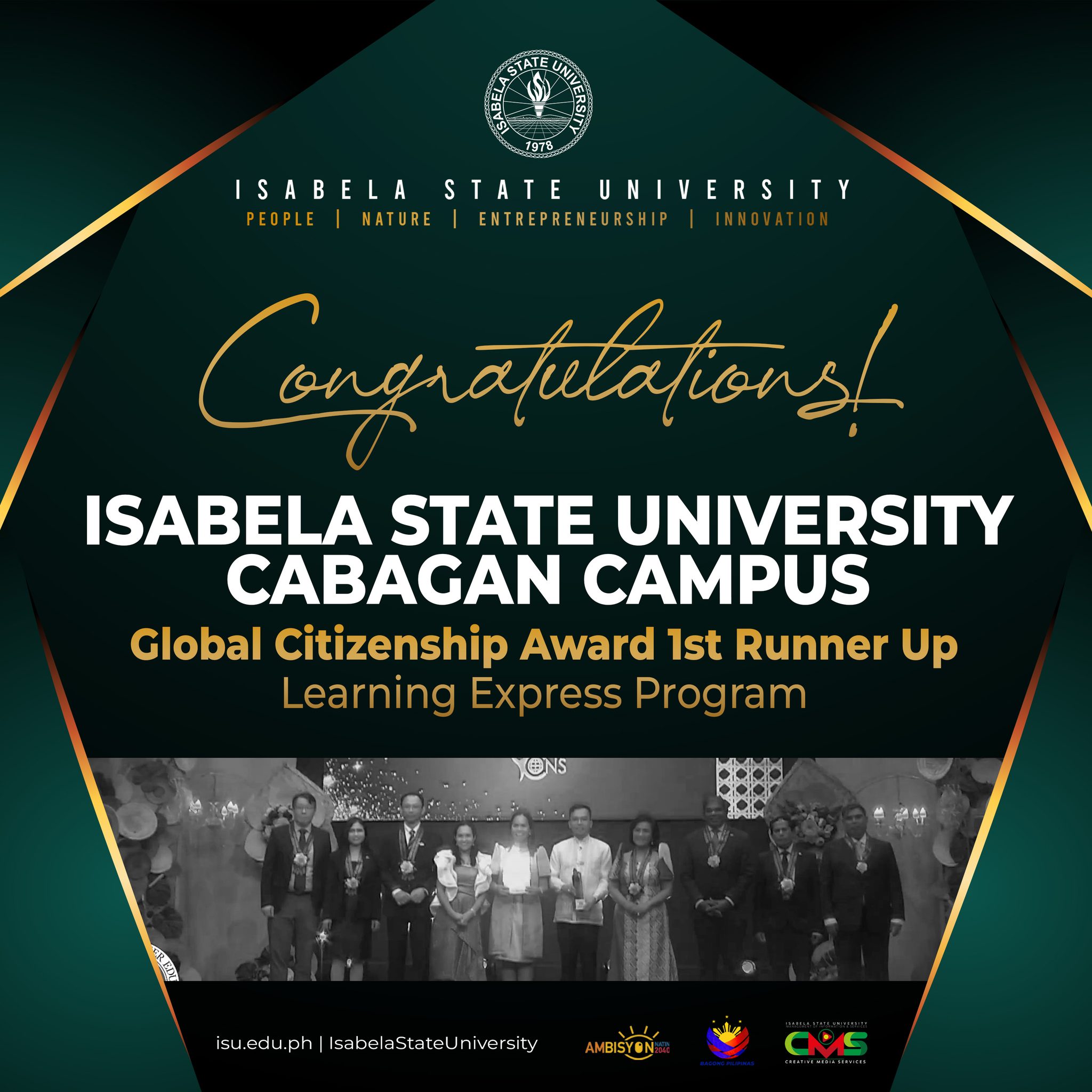 The ISU Cabagan Campus was recognized for its Learning Express Program, an initiative that promotes intercultural understanding, empowers young changemakers, and cultivates responsible global citizenship.