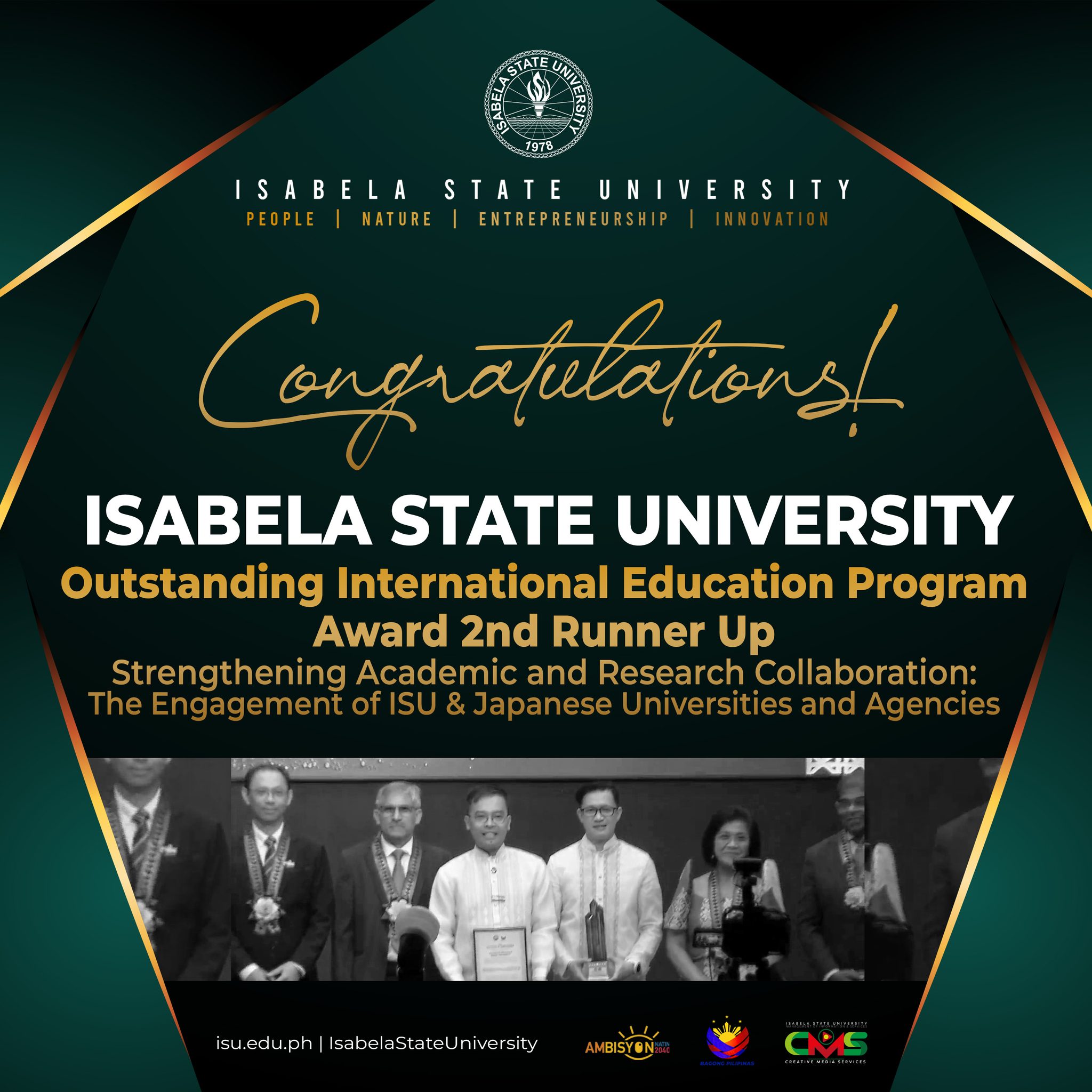 These awards are manifestations of ISUโs pursuit toward excellence in its international engagements and its contributions in elevating the global presence of Philippine higher education.