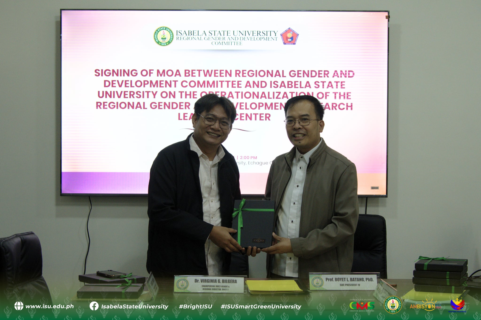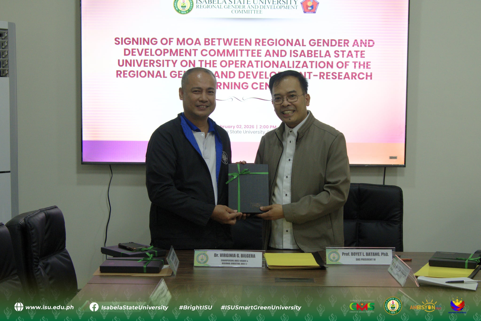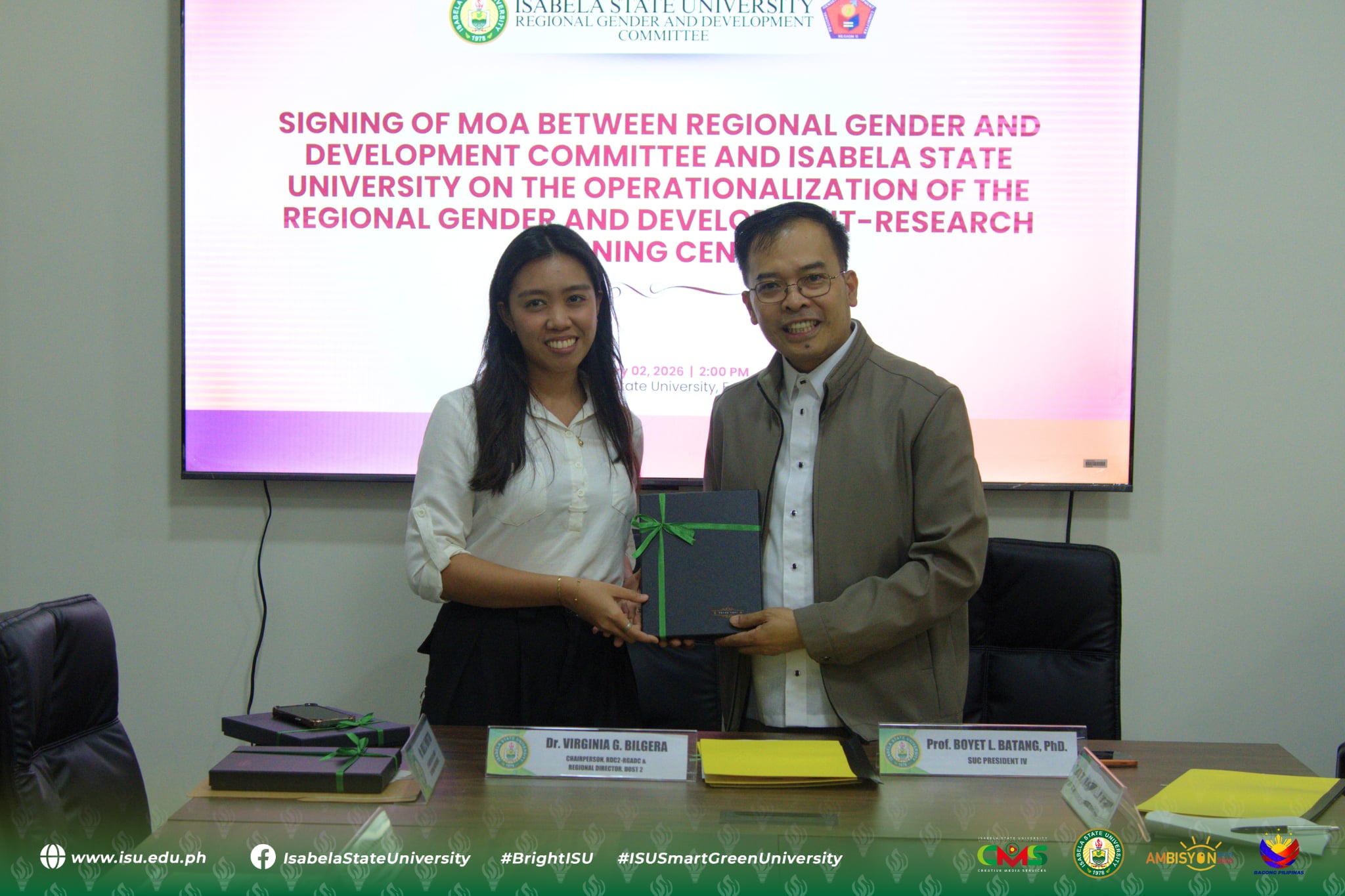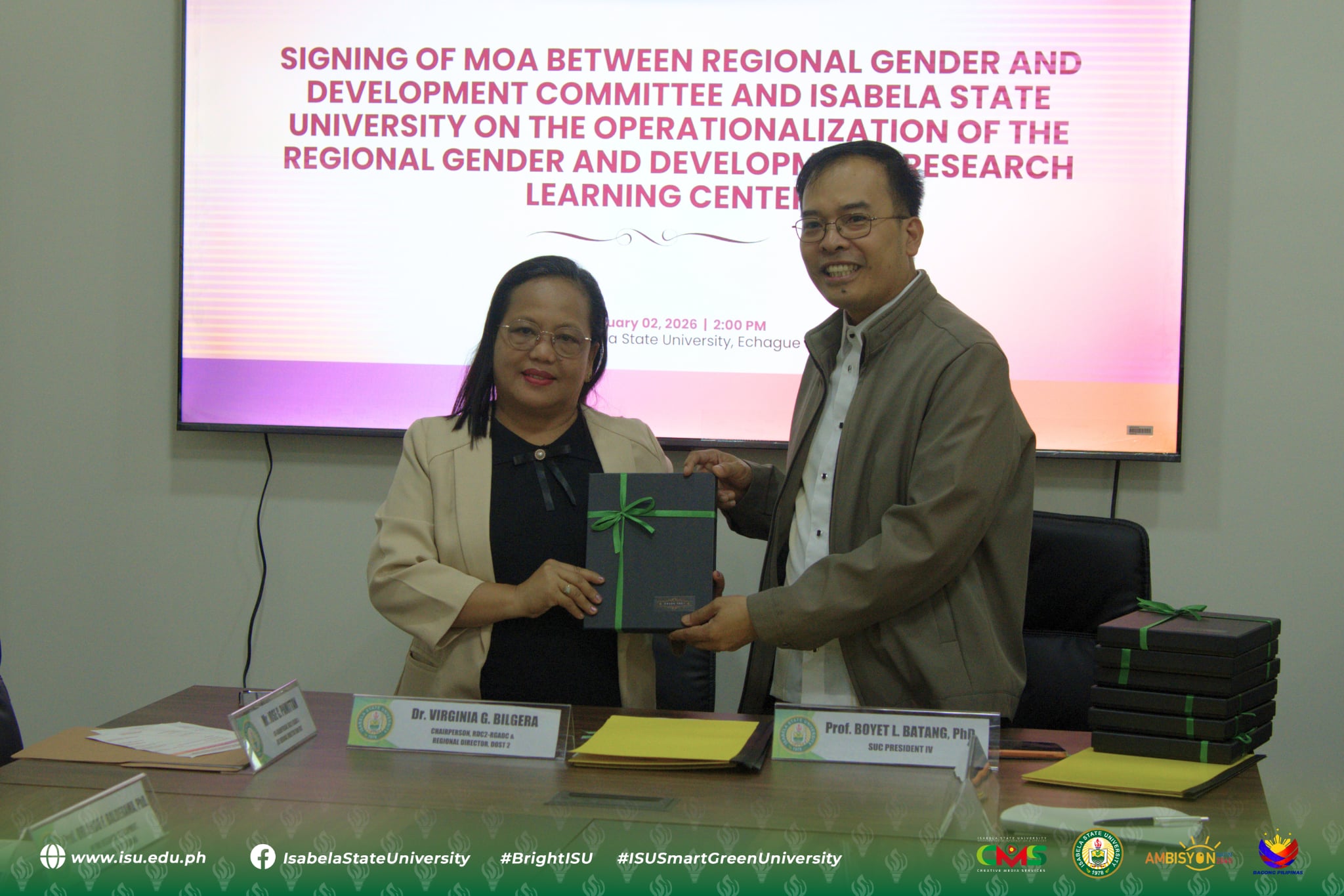 Isabela State University (ISU) formalized its partnership with the Regional Gender and Development Committee (RGADC) through the signing of a Memorandum of Agreement (MOA) on the operationalization of the Regional Gender and Development–Research Learning Center (RGAD-RLC) on February 2, 2026 at the Alba Hall, ISU Echague Campus.